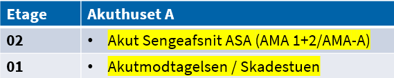 Fra Akuthuset (A) til Operationshuset (G) er ca. 160 meter.