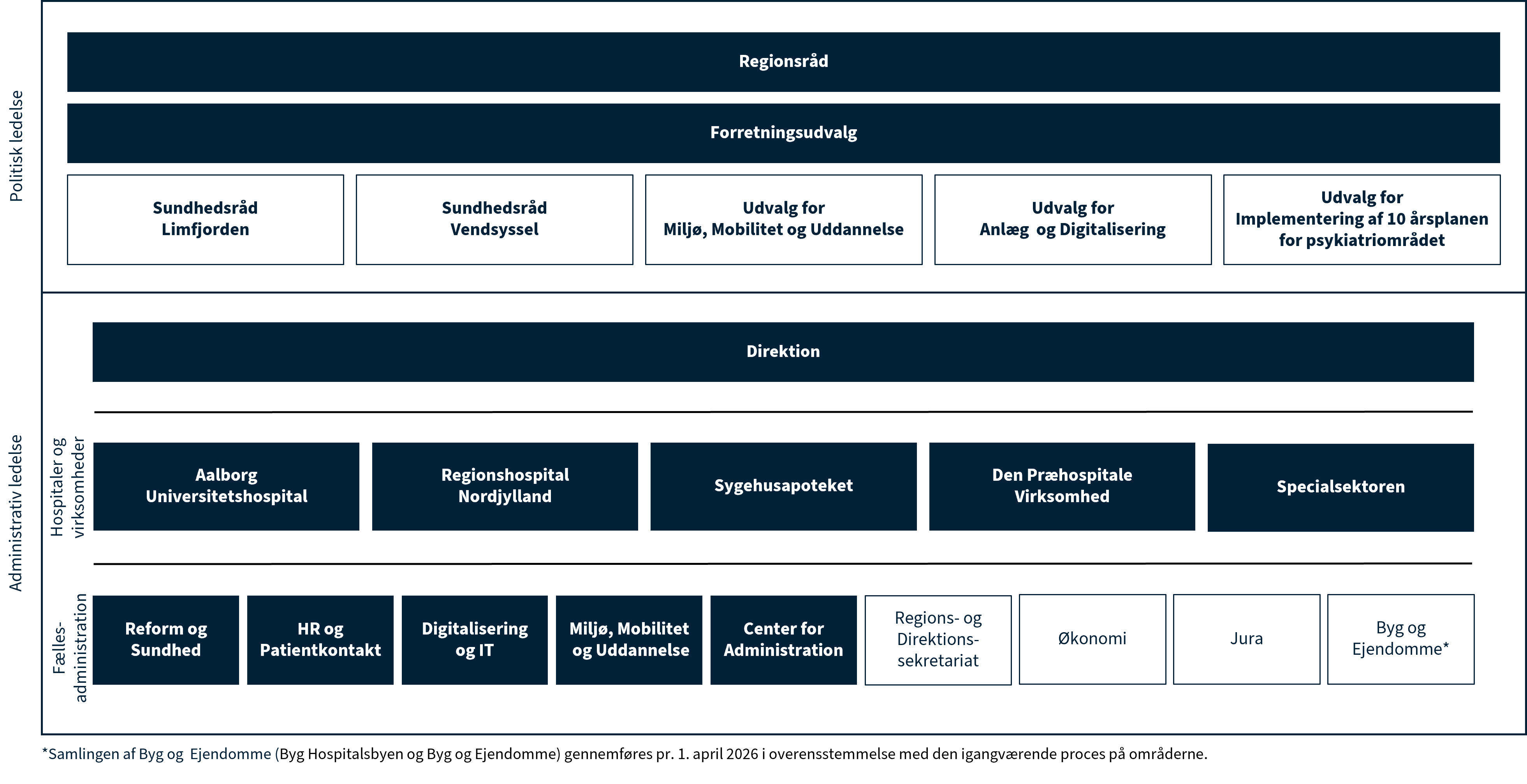*Samlingen af Byg og Ejendomme (Byg Hospitalsbyen og Byg og Ejendomme) gennemføres pr. 1. april 2026 i overensstemmelse med den igangværende proces på områderne.