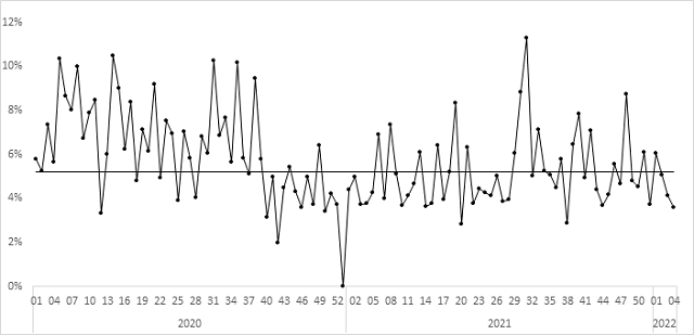 At arbejdsgangene er blevet en fastforankret del af kulturen, kan nu aflæses i Ambulatoriets data, hvor niveauet for udeblivelser nu er stabilt, og har været det igennem længere tid: