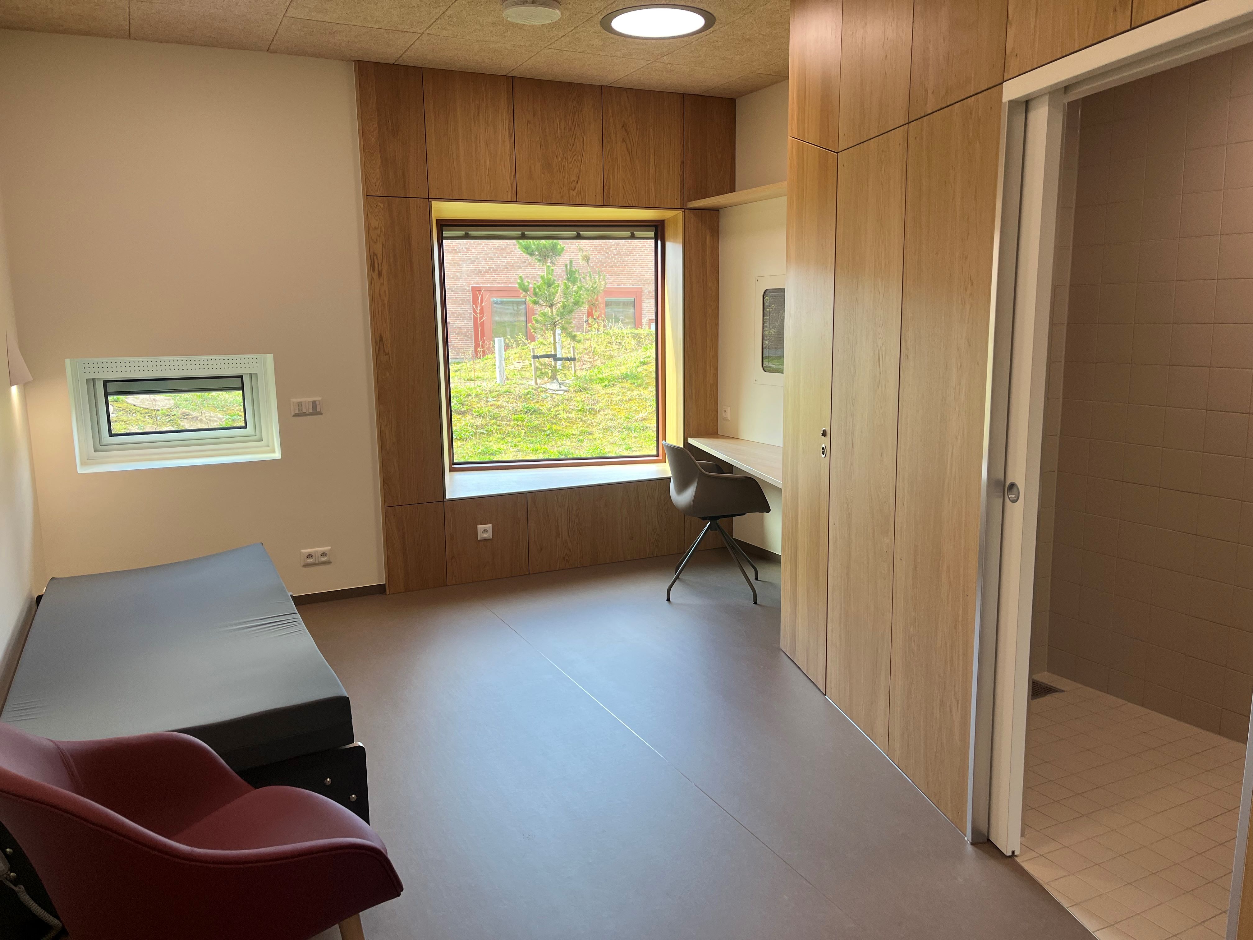 I de to sengeafsnit er der enestuer, ligesom der også er adgang til en lang række aktivitetsmuligheder i form af idrætshal, fysioterapirum, sanserum, motionsrum og både indre og ydre gårdhaver.